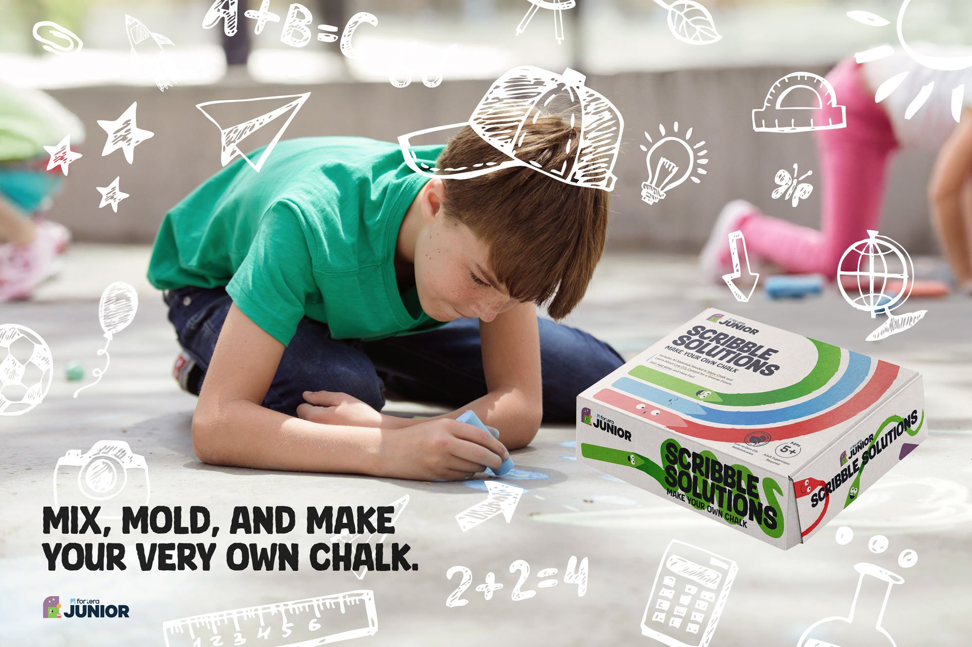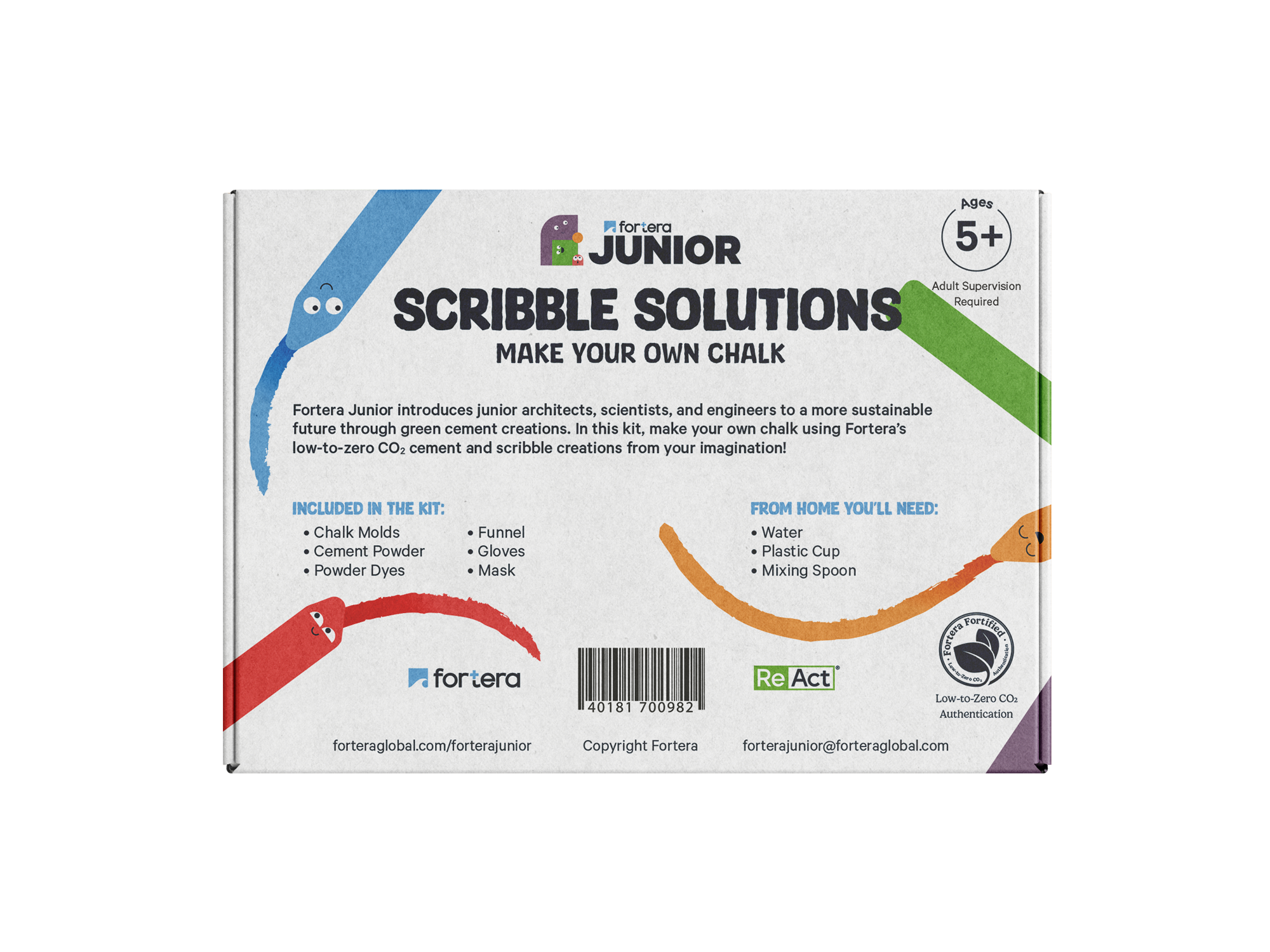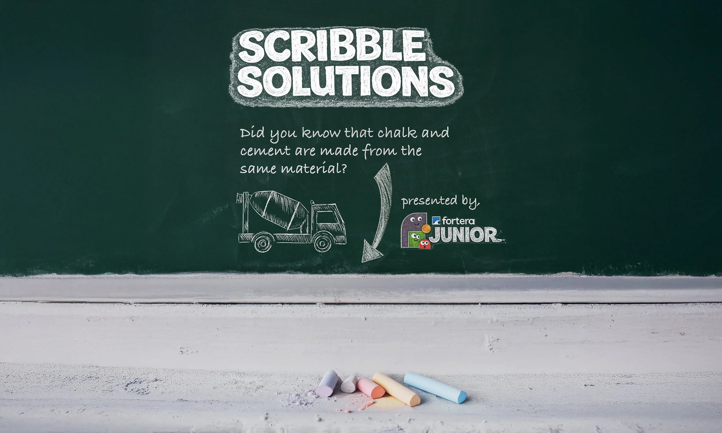Fortera Junior is a sub-brand connecting Fortera’s sustainability mission with education. We created the product SCRIBBLE SOLUTIONS, a STEM kit introducing kids to the science of cement. This involves the impact cement and concrete have on society and our climate.
