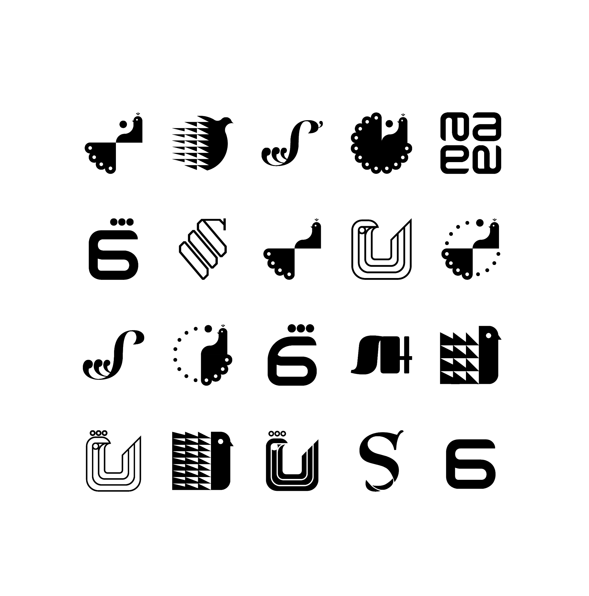 We explored a variety of peacock designs before arriving at the final visual style.